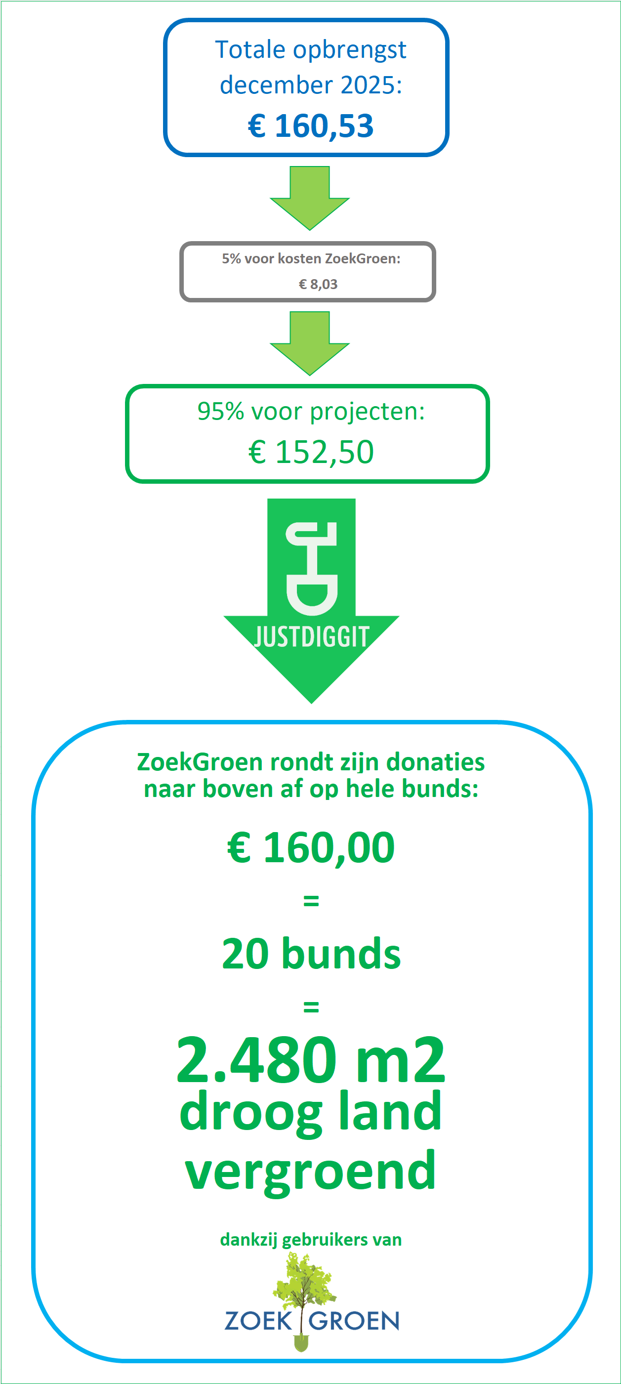 In december 2025 heeft ZoekGroen € 160,53 opgebracht.