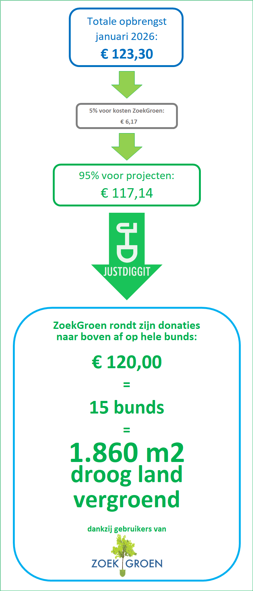 In januari 2026 heeft ZoekGroen € 123,30 opgebracht.